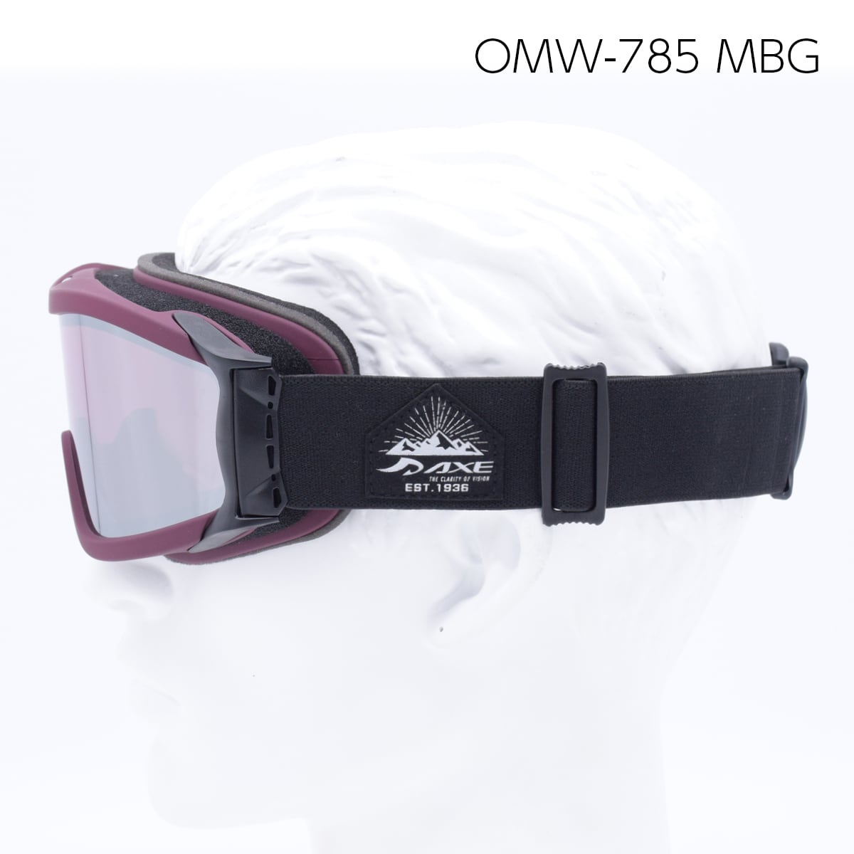 【25-26モデル】明るい視界 スノーゴーグル UVカット ユニセックス スキー スノボ 【OMW-785N MBG】 マットバーガンディカラー シルバーミラー 紫外線対策 曇り止め加工 メガネ対応 ヘルメット対応 アジアンフィット [AXE アックス]
