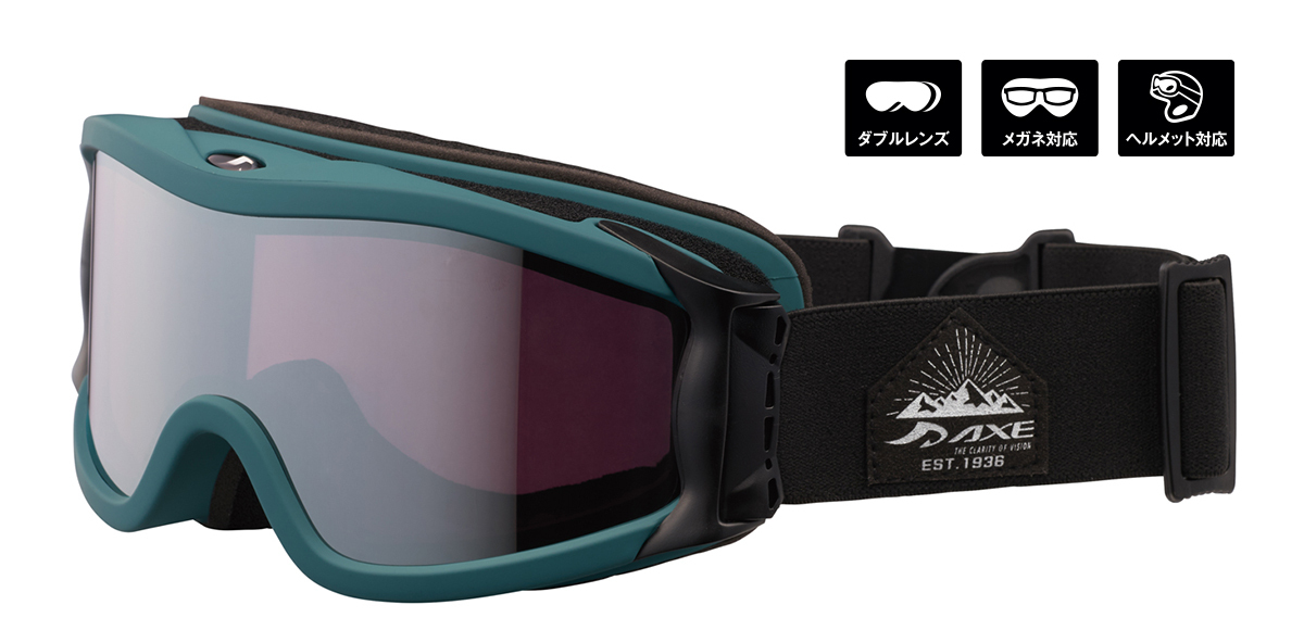 【早期予約特典付】明るい視界 スノーゴーグル UVカット ユニセックス スキー スノボ 【OMW-785N MGR】マットカラー グリーン シルバーミラー 紫外線対策 曇り止め加工 メガネ対応 ヘルメット対応 アジアンフィット [AXE アックス]