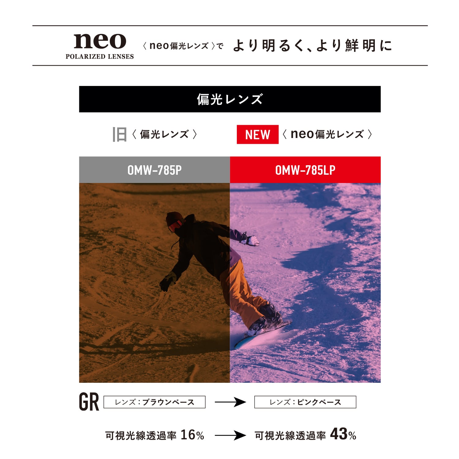 【OMW-785LP】の偏光レンズは、自然で明るい視界を維持しながら、より凹凸をはっきりさせるピンクベースのレンズを使用。