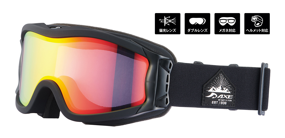 【早期予約特典付】低偏光 ダブルレンズ 明るい視界 スノーゴーグル スキー スノボ ユニセックス 【OMW-785LP RE】偏光レンズ ダブルレンズ レッドミラー UVカット 紫外線対策 曇りにくい メガネ対応 ヘルメット対応 アジアンフィット [AXE アックス]