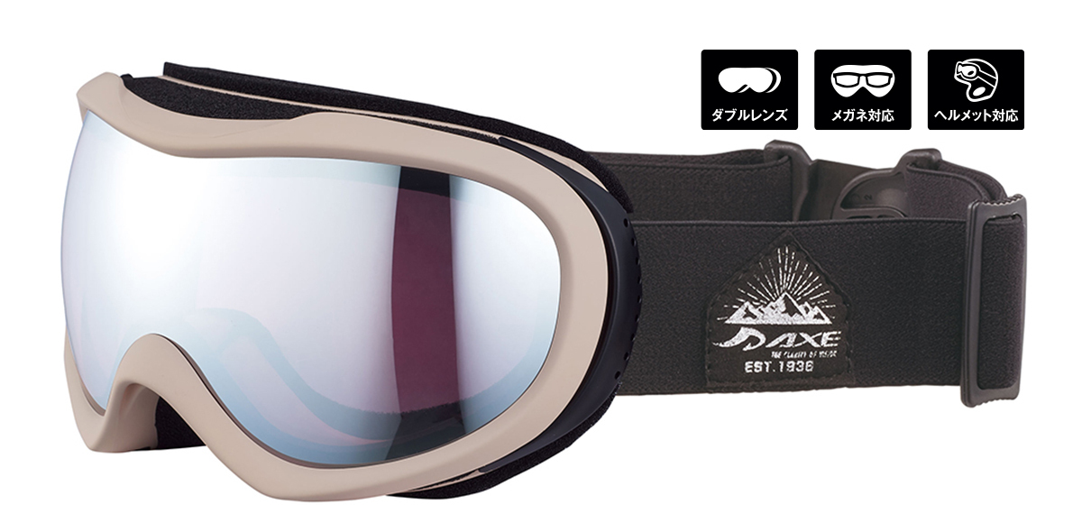 【早期予約特典付】明るく見える メガネ対応 スノーゴーグル UVカット スキー スノボ 【OMW-780N BE】マットベージュ シルバーミラー ダブルレンズ はっ水性ベルト 紫外線対策 ヘルメット対応 アジアンフィット [AXE アックス]