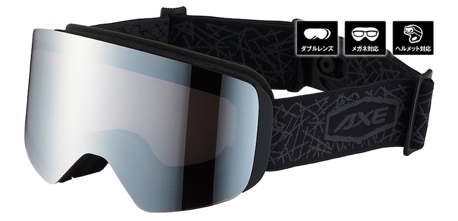 【早期予約特典付】[推奨年齢10才~] メガネ対応 フレームレス スノーゴーグル ダブルレンズ UVカット スキー スノボ 【AX290-WMD BK】 シルバーミラー 曇りにくい 紫外線対策 アジアンフィット ジュニア レディース [AXE アックス]