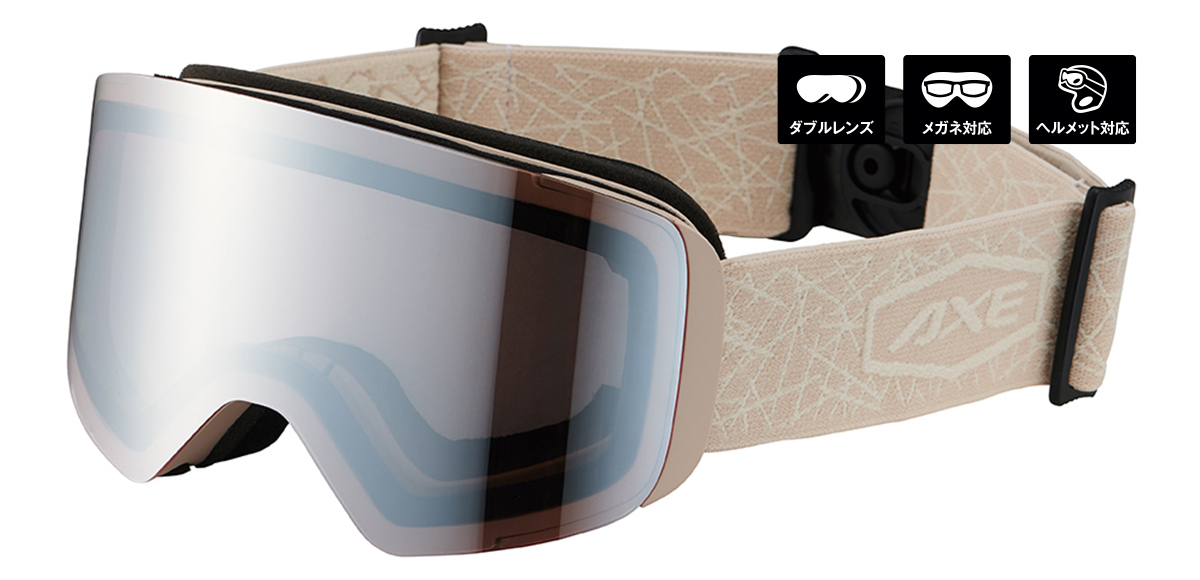 【早期予約特典付】[推奨年齢10才~] メガネ対応 フレームレス スノーゴーグル ダブルレンズ UVカット スキー スノボ 【AX290-WMD BE】 シルバーミラー 曇りにくい 紫外線対策 アジアンフィット ジュニア レディース [AXE アックス]