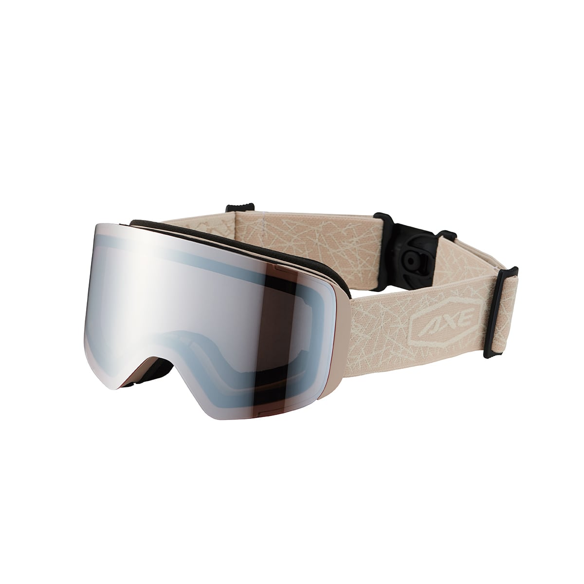 【25-26モデル】[推奨年齢10才~] メガネ対応 フレームレス スノーゴーグル ダブルレンズ UVカット スキー スノボ 【AX290-WMD BE】 シルバーミラー 曇りにくい 紫外線対策 アジアンフィット ジュニア レディース [AXE アックス]