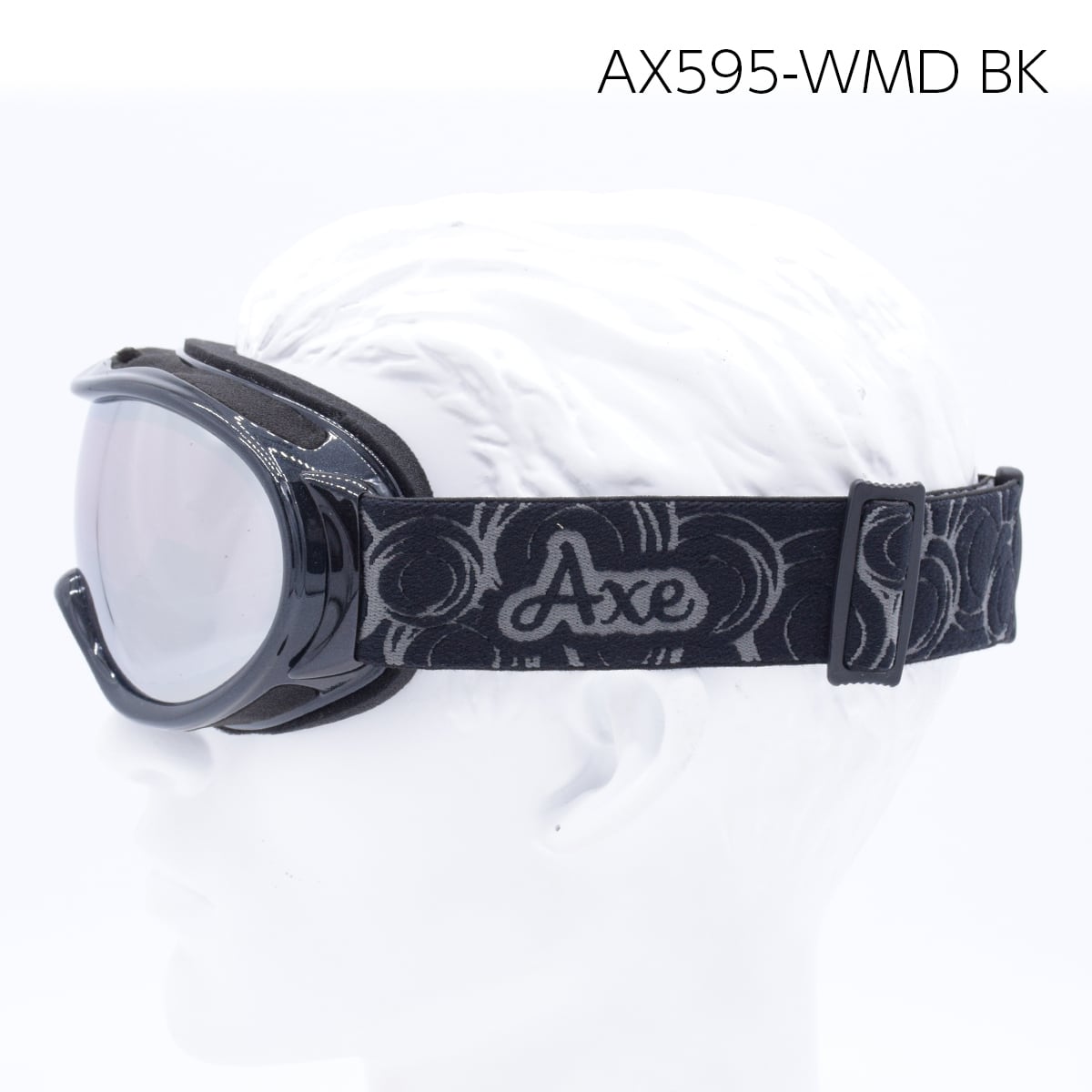 曇りにくい メガネ対応 スノーゴーグル UVカット スキー スノボ 【AX595-WMD BK】 ブラック シルバーミラー 紫外線対策 曇り止め加工 ヘルメット対応 アジアンフィット レディース [AXE アックス]