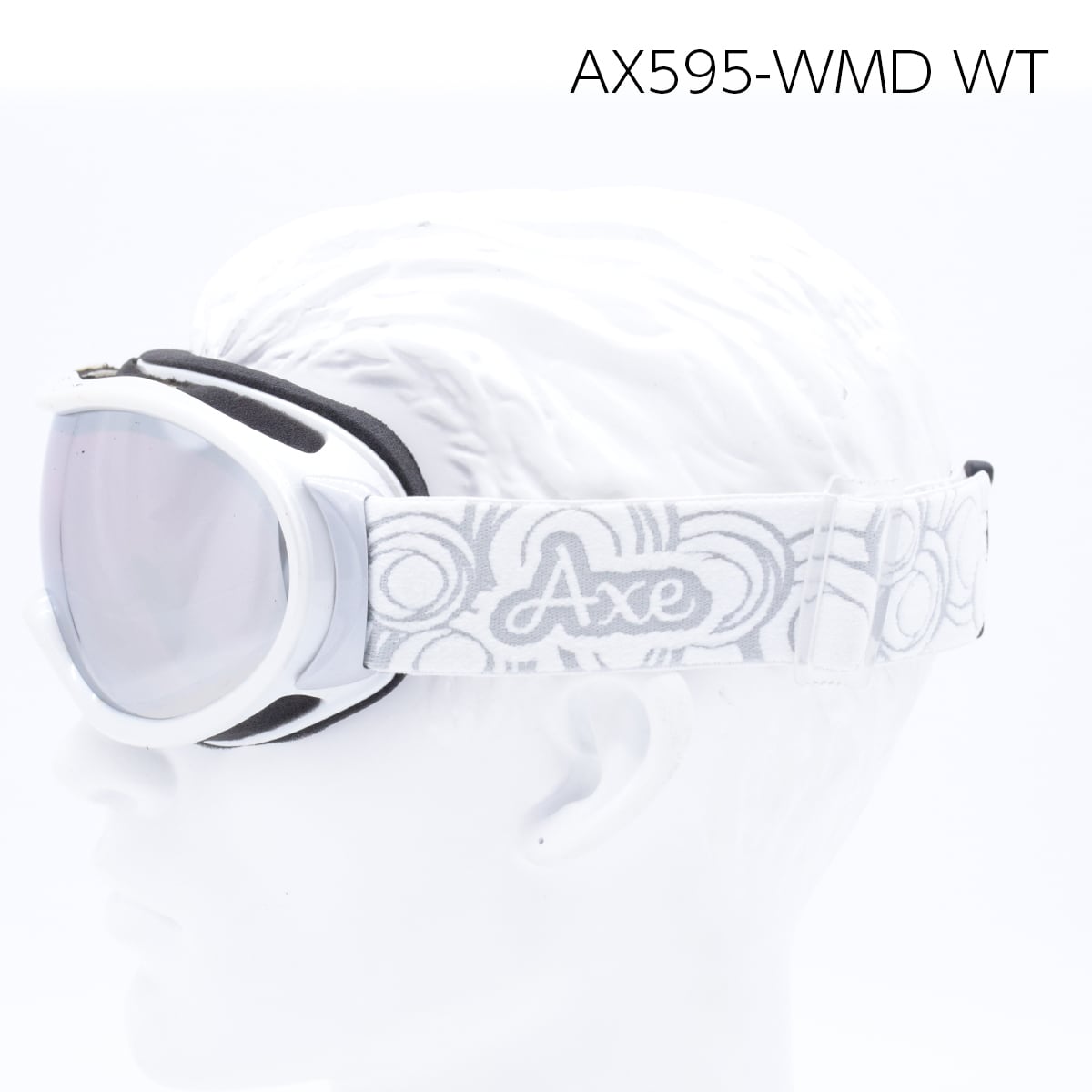 曇りにくい メガネ対応 スノーゴーグル UVカット スキー スノボ 【AX595-WMD WT】 パールホワイト シルバーミラー 紫外線対策 曇り止め加工 ヘルメット対応 アジアンフィット レディース [AXE アックス]